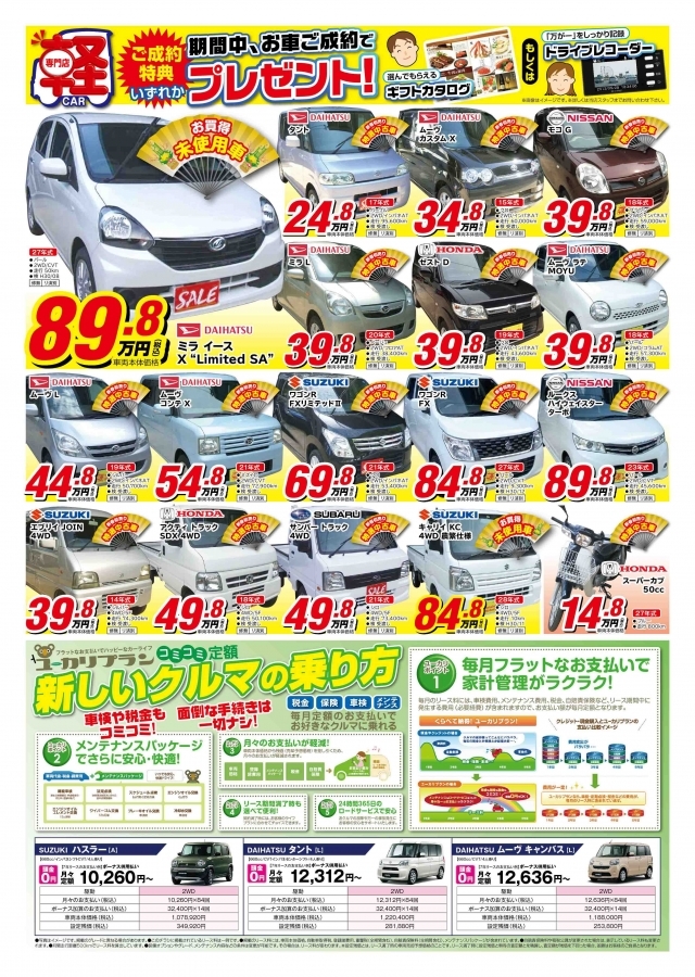 新年明けましておめでとうございます。本年も、田中モータースをどうぞ、よろしくお願いします。 今年も、新春、初売りフェアーを1月8日(日)9日(月)と2日間開催します。期間中は、各メーカーの新車を始め、中古車もお買い得となっております。ぜひともこの機会に和歌山県日高郡・御坊市エリアで軽自動車専門店の田中モータースにご来店を!!